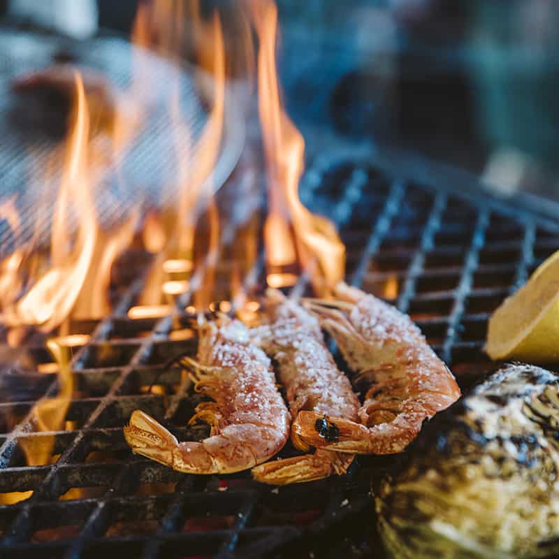 Äta något riktigt gott och närodlat från grillen på Eld & Vin. |