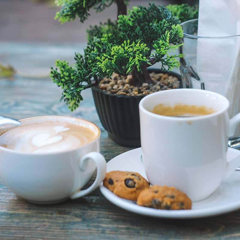 Träffa vännerna över en god fika med en smarrig cappucino i vårt café. |
