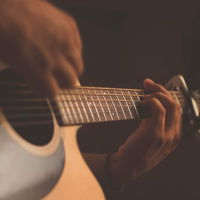 Lyssna på en trubadur och sjung med till dina favoritlåtar vid vår scen. |