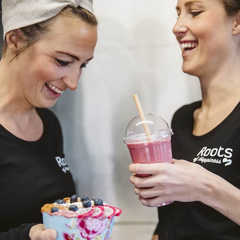Unna dig en nyttig sallad eller smoothie hos Roots of Happiness och känna dig extra hälsosam. |